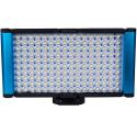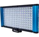 The Dracast Camlux Pro Bi-Color On-Camera Light Kit is an ultra-compact fixture that is fully enclosed in an anodized blue aluminum body. It features 160 LED's on the light board in bi-color.